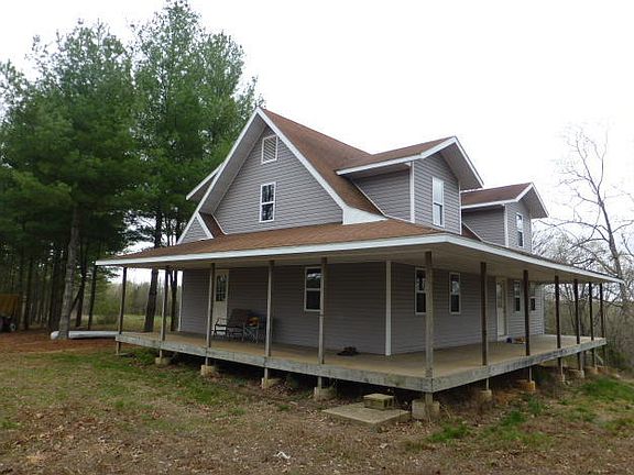 Don't judge a book by its cover! Please read carefully! As you approach, the home(on 19.6 acres) looks 99% complete, sitting majestically beside a grove of pine trees. Peek in the windows and you'll see sub-flooring and unfinished walls. The rooms are laid out but the canvas is yours to design as you please! Lots of improvements in the last couple of years!The main floor offers an open living room, kitchen and dining area, one bedroom, a large bathroom, and a nice utility room with entrance. Upstairs you'll find 1-2 bedrooms, a bathroom and storage space. The walkout basement is open!The home is perched on an Ozark Mountain ridge. With some clearing, there could be a spectacular view!If you're considering building a home, take a look at this one! The possibilities are