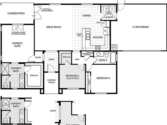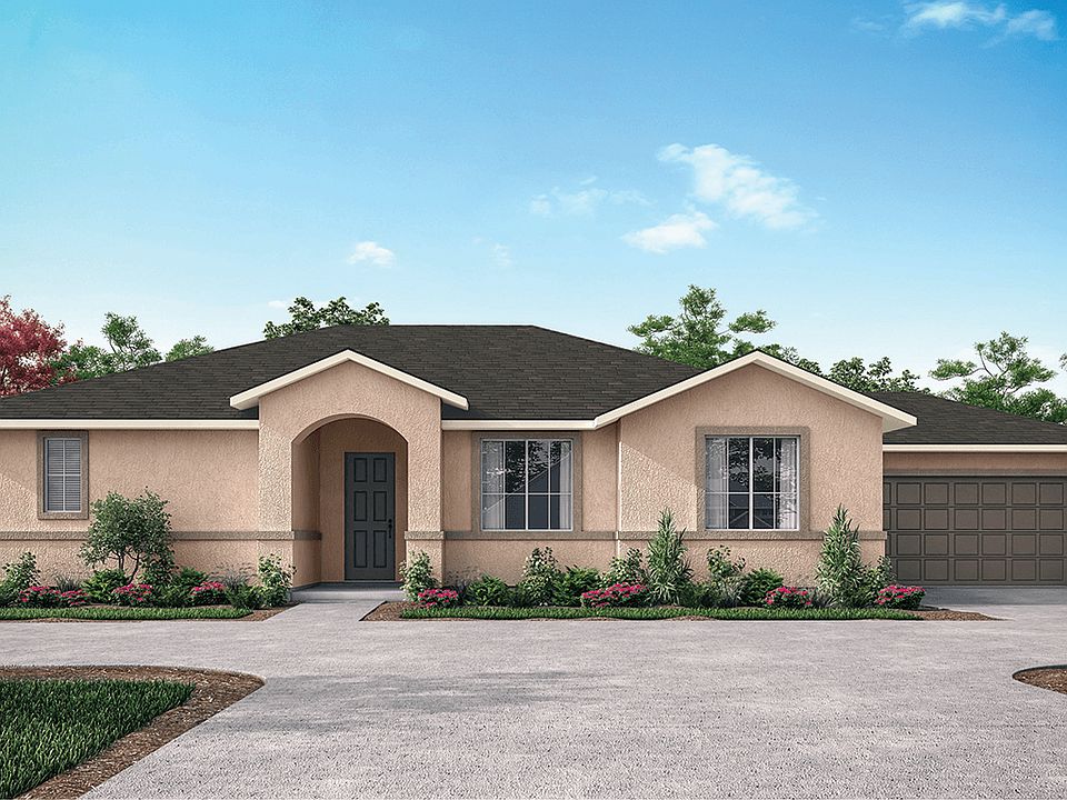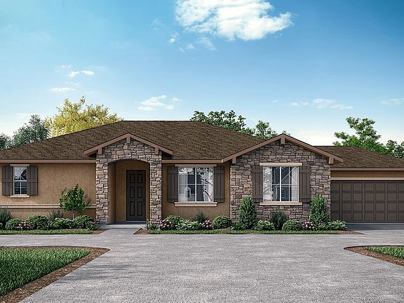 The Avalon plan is 1,597 square feet, single story, 3 bedrooms and 2 bathrooms.. This quality-crafted plan features Mediterranean, Tuscan and traditionally styled exterior designs with inviting carriage lights, full-height stone veneer, decorative shutters, charming front porches, a covered patio and more. On the interior of the home, you will find standard features such as spacious 9-foot ceilings, tile flooring at the entry, dining, kitchen, baths and laundry room, walk-in closets at the owner's suite, Whirlpool® stainless steel gas range, microhood, and dishwasher, and a brushed nickel trim and hardware package. Call the sales office to find out more about this plan's availabilities and ways you are able to customize it. Only a few homes remain at Arbor Gates in Visalia. Don't miss out on this exclusive Southwest Visalia neighborhood with the privacy and security of a gated community.