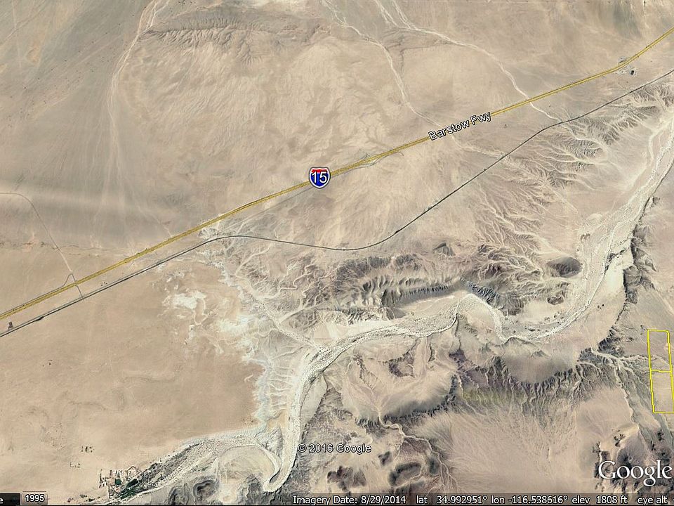 Vacant land east of Barstow, CA. Driving directions from I15, CA (Dirt road which may not be well maintained, map is best viewed in Satellite or Hybrid mode): http://www.gmapgis.com/index.htm?StKw7Bpy6J.gmp 60 Minutes from Barstow, CA 1.25 Hours from Victorville, CA 2.25 Hours from San Bernardino, CA 2.5 Hours from Las Vegas, NV 2.75 Hours from Riverside, CA 3.25 Hours from L.A., CA 3.25 Hours from Anaheim, CA All time estimates are traffic dependent Off-roading/Dirtbiking/ATV paradise! Own your own desert paradise! Close enough to L.A., San Bernardino & Riverside for weekend enjoyment. There are plenty of things to do nearby including visiting several museums in Barstow and Victorville, Death Valley and many more things in the towns and cities nearby. Size: 2 x approx. 80 acre lots = approx. 160 acres APN: 0542-091-61-0000 & 0542-091-66-0000 LEGAL DESCRIPTION: West one-half (W1/2) of the Northwest one-quarter (NW1/4) and West one-half (W1/2) of the Southwest one-quarter (NW1/4) of Section Nine (9), Township Ten (10) North, Range (5) East, San Bernardino Base and Meridian CLOSING DOC FEES: $0 (Deed Ventures will cover) PROPERTY TAX: Approximately $180/year ASSOCIATION DUES: 0 TITLE INFORMATION: Grant Deed (title insurance available at buyer’s expense) COUNTY RECORDING FEE: Paid by seller POWER: Off grid, solar, propane, wind WATER: Check with local municipality SEWER: Septic or other system PHONE: Check with local municipality ROADS: Dirt GPS Coordinates: 34.973052, -116.466015 APPROX ELEVATION: 1,870 ft ZONING: Residential TIME TO BUILD: There is no time limit to build. TYPE OF TERRAIN: Varied, rolling/flat/ravines ABOUT ME: I scour the country for opportunities to own properties with great deals. I price my properties below market value because I focus on maximizing my deal volume and turn-over. Because I price my properties below market value, they tend to sell quickly. First come, first served. If you are interested in one of my properties, please research your questions online or in the FAQ section of http://www.deedventures.com/ I list everything I know about the property on my website and in my Youtube videos. I have not been to this property. Return policy: 30 day 100% money back guarantee