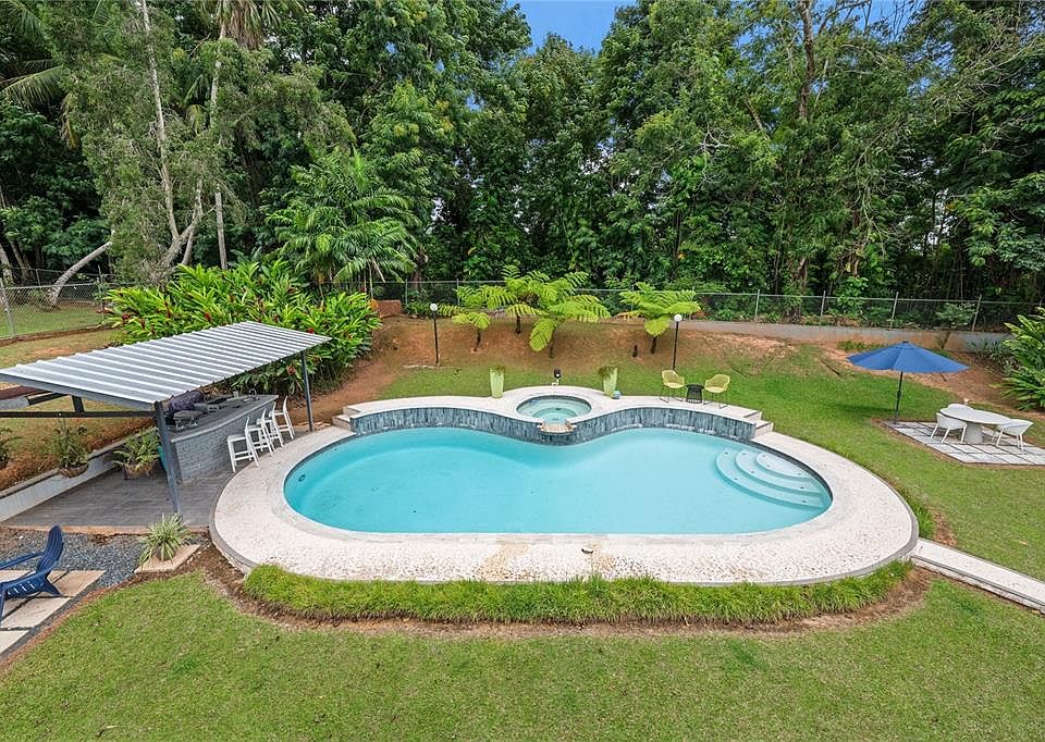 Discover the perfect blend of city convenience and tranquil countryside living in this beautiful one-story home in Lomas del Sol, Guaynabo. This property offers the best of both worlds—easy access to urban life while being surrounded by nature, lush vegetation, and fresh breezes. Situated on an expansive 2,182 m² lot, this contemporary residence boasts 1,864sq ft. The property features impressive outdoor oasis great for entertaining. The interior showcases an open-concept layout, including a living room, dining area, an inviting family room, and kitchen with top-of-the-line appliances. The house spans three bedrooms with two bathrooms, and a powder room, additionally two flex rooms currently used as an office and storage room, convertible to a private apartment. Enjoy resort-style amenities including a Salt Water Pool with an Inverter Motor, an outdoor bar with BBQ area, and a fire-pit or lechónera. Designed for comfort and sustainability, the property is fully equipped with a 12k Generator, 23 Solar Panels, 2 Tesla batteries, and a Solar Water Heater. This home invites you to live a lifestyle that seamlessly combines nature, comfort, and convenience. Don’t miss this rare opportunity, call today to schedule your private showing!
