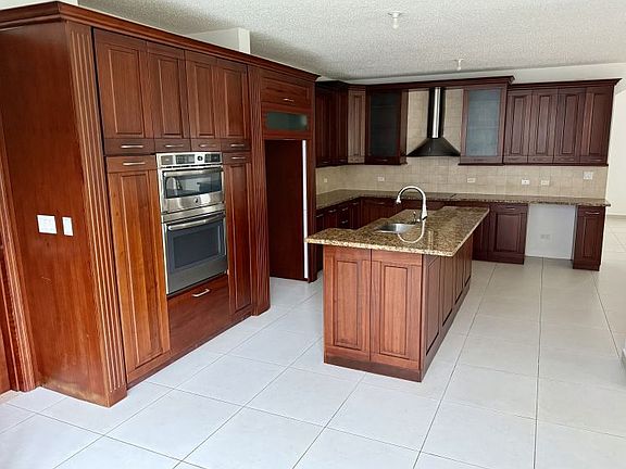 La cocina ha sido diseñada para inspirar a los amantes de la gastronomía: incluye estufa eléctrica, lavavajillas, dos hornos dobles (uno con función de microondas), consola de aire acondicionado, topes de granito y una amplia isla central, ideal para reuniones familiares o sociales.