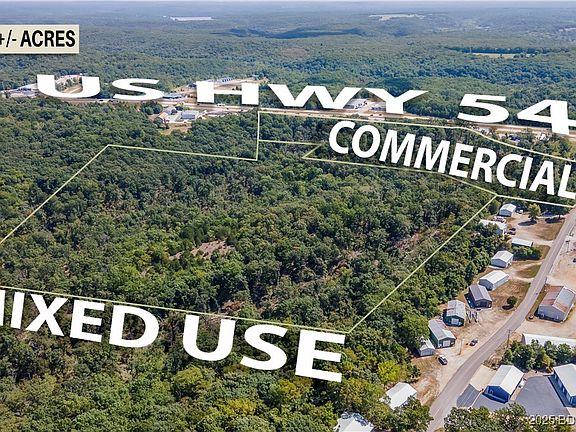 Exceptional development opportunity located on the northwest corner of Highway 54 and Runabout Drive in the heart of Osage Beach! Entitlements are in place to save you money and time! Great location for a Large Hotel/Resort, Theme Park, or Mixed use with Commercial alongside the Highway and Dense Residential behind it. Special Use Permit to allow a mixed residential development in Commercial District. This prime parcel boasts over 1,000 feet of coveted highway frontage and 54 acres, offering unmatched visibility and accessibility in one of the Lake area’s fastest-growing corridors. Uniquely zoned R-3 for both commercial and residential use, the property is positioned for maximum flexibility and return on investment. Current renderings showing 84 Single Family Homes and 44 Townhomes with Commercial Storefronts on the acreage along the highway. Or higher density is already approved! PLUS, CITY WATER AND SEWER AVAILABLE for hookup. Whether you’re seeking to capitalize on the booming demand for housing, expand retail and service options, or create a mixed-use destination, this land presents endless possibilities.