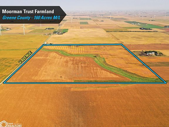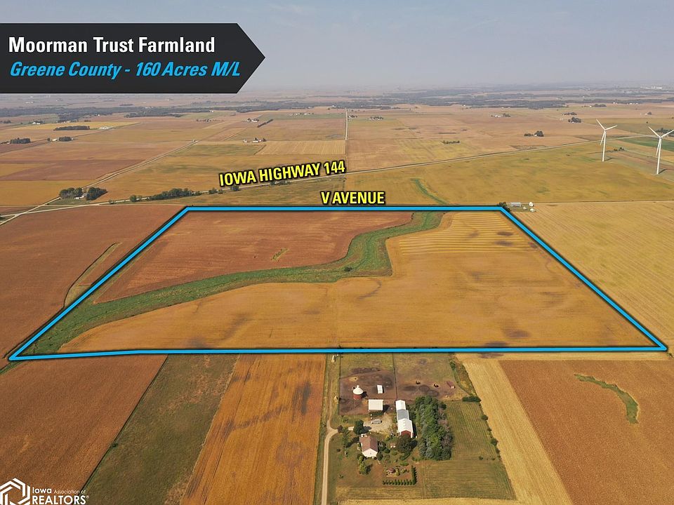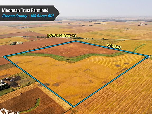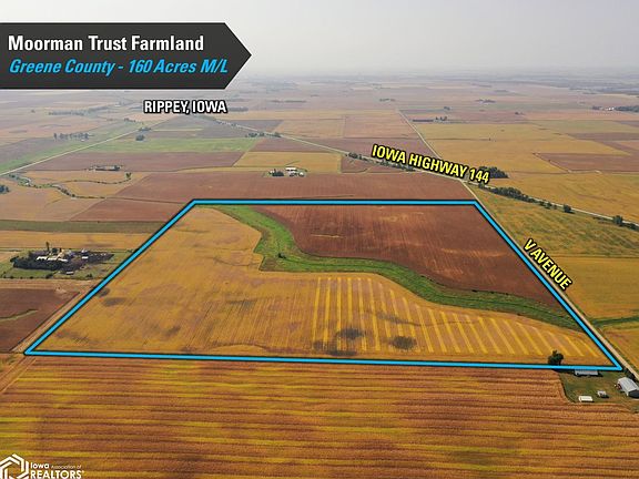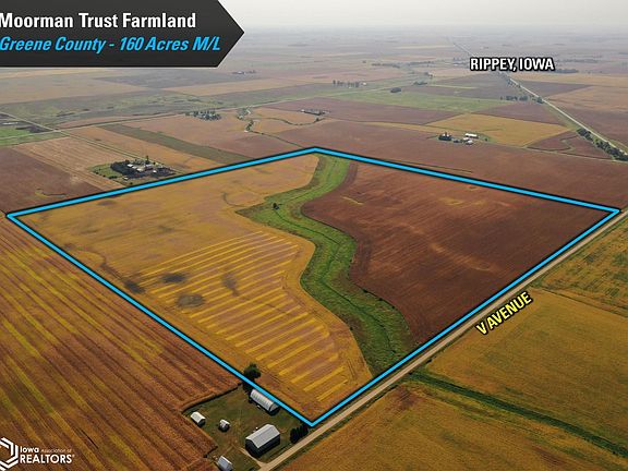 Greene County, Iowa Farmland Auction – Mark your calendar for Friday, November 7th, 2025, at 10 AM! I'm pleased to represent the beneficiaries of the Raymond E. Moorman Trust in the sale of their family farm located just north of Rippey, Iowa, and south of Grand Junction, Iowa in Greene County. The farm consists of 160 acres m/l and will be offered as a single tract. There are 147.39 certified FSA cropland acres with a CSR2 soil rating of 80.4 and prominent soil types of Clarion loam, Clarion-Storden complex, and Webster clay loam. Currently, an estimated 133.80 acres m/l were planted this year, with the balance discontinued in the Conservation Reserve Program (CRP). These acres are eligible to be farmed moving forward. Snake Creek runs diagonally through the tract, and access is from the west off V Avenue. No established crossings are in place to cross over the creek; however, there are driveways in the northwest and southwest corners that offer access to both sides of the creek. Additionally, a dead-end county road stops at the eastern boundary of the farm, offering additional access to the east side of the farm. This tract has multiple nearby grain marketing options with the Landus co-op in Rippey, Iowa, and the Louis Dreyfus ethanol plant in Grand Junction, Iowa. Located just east of Iowa Highway 144, the Iowa highway system is also within easy access. Visit our website for more info!
