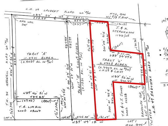 Don't miss this amazing opportunity in Randolph Twp! This vacant land property can be bought alone as 6.03 acres or together with the neighboring lot which is 5.02 acres. Mostly cleared and in a wonderfully rural setting, this could be the site of your dream home! This 6+ acre lot has almost 300' feet of frontage on Industry and also 183' of frontage on Laubert. Make sure to take a drive by and schedule to walk the property with your favorite realtor today. This beautiful property won't last long!