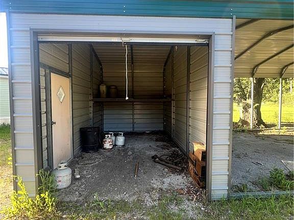 Bring your imagination to this peaceful .90 acre lot with a 50x32 concrete shop. Inside the shop offers a walk in safe perfect for hunting and fishing materials, shop also offers a loft for additional storage. On this property there is also a 35x18 covered carport with inclosed storage space.