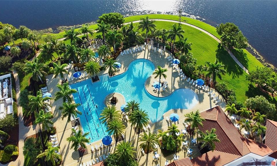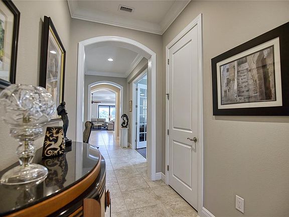 Waterfront pool retreatFull-view pool cageGutters and downspoutsTen-foot ceilingsOpen floor planSurge protectorsTen-inch crown molding