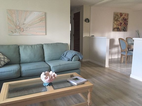 THIS IS A SEASONAL RENTAL ONLY. SHORT TERM 3-6 MONTHS - Located 'West of the Trail' in South Venice, this pet friendly, non-smoking, two bedroom, two bath house is decorated tastefully with attention to detail and with a light coastal feel. No ugly, mismatched, garage sale furniture here!! Lush, comfortable furniture and bedding. New flooring. Bedrooms are carpeted. Spacious dinette area off of a roomy kitchen. Large living room with new couches. Cozy bedrooms with plenty of lamps. Master bedroom has a private bath with new vanity, comfort height toilet, and roomy, walk in shower. large closet. Second bedroom, twin beds & large closet. Full updated second bath in hall with new vanity and comfort height toilet! New washer & dryer, WiFi Modem in house and new, 43" HDTV. Live tv streaming (same as cable) that you can also used on your laptops around the house. House features a charming, enclosed, in-screened lanai allowing for privacy with a feel of classic old Florida. Large, comfy wicker chairs. Driveway parking. House sits on a manicured lawn on large park-like, double lot with mature shady trees including, tall Pines, huge old oak and a beautiful Palm in front which gives a lot of privacy and shade. Yard is not fenced for pets. Signed rental agreement/contract required. No cancellations inside of six months prior. Some exceptions would be made