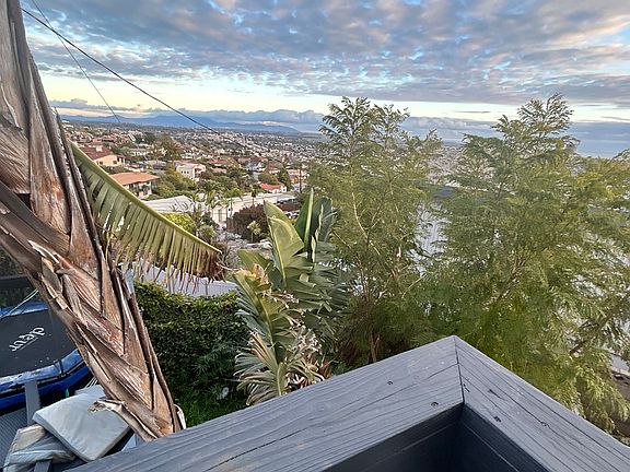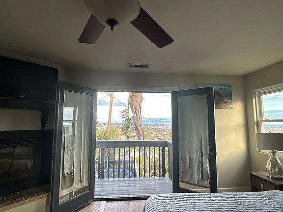 VIEWS! Unobstructed Ocean, City, & Mountain Views! 3 bedroom 2 bathroom house (unsure why it says Apartment!). This beautiful air conditioned home is located in the highly desirable hills of Ventura! The property offers stunning views from the home, with balcony and decks in backyard overlooking all of Ventura, Oxnard, Port Heuneme and out to the Camarillo Grade! Enter into the property to be greeted by the a stunning, open concept and dining room. Restoration Hardware leather sofas, around fireplace with double glass doors enjoying the expansive views. The living room, bedroom or master bedroom are all perfect spots to watch the sunset. The all white shaker, beautifully updated kitchen is part of the open floor plan! Breathtaking sunrises, from the double door glass doors of master bedroom. The master bedroom ensuite is equipped with a large walk in closet, fireplace, and large basin tub next to a sand-tone spacious stand up shower. Enjoy the view of Ventura from the king bed! The second bedroom has a queen sized bed, and the third bedroom also has a queen sized bed. This backyard is perfect for enjoying views, lounging in the sun, or watching the breathtaking sunrise. Off street parking and other home on same property, quiet and private. Owner may consider a small pet with additional fee. All utilities included -water, sewer, trash, gas, electricity, and Wi-Fi are all part of this partially furnished or ready for your furnishings! No garage. Attached to upper home, on tiered hillside so not directly overhead but beside it. Vacant and ready for you now!