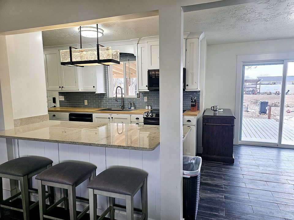 New roofNew forced air heaterNew appliancesNew air conditioner unitNew kitchen cabinetsLean to for storage