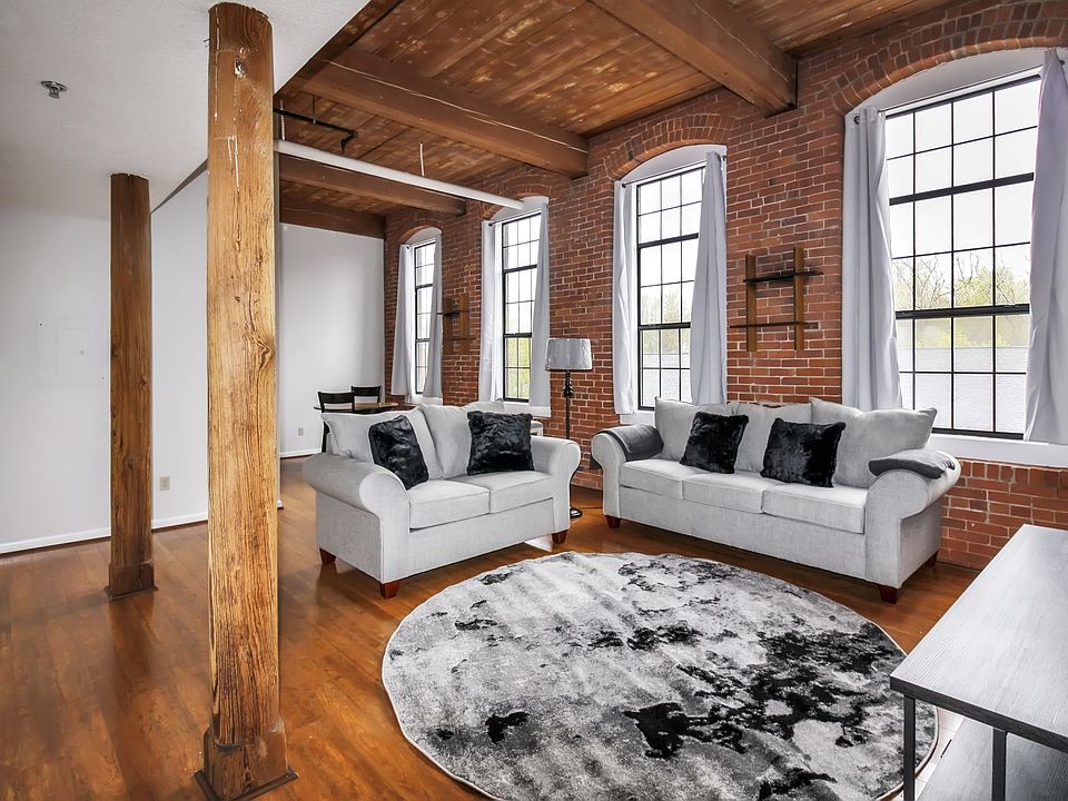 Gorgeous ranch unit in the historic Falls Mills complex! With tall ceilings, exposed brick and beams, this rustic, yet modern unit is waiting for you. Living room with large palladian windows and cherry plank flooring, bedroom with newer carpeting and kitchen with stylish granite countertops and stone backsplash. This unit also features a newer natural gas heating and central air system, newer hot water heater and laundry IN the unit. With a beautiful waterfall on the well maintained grounds, this refurbished historic mill building offers modern charm and conveniences, yet is so close to shopping, highways and recreation on the nearby Rail Trail system.