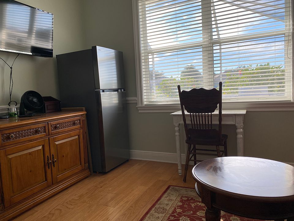 Efficiency kitchen microwave and hot plate no stove. Private entrance. All utilities plus Wi-Fi included.