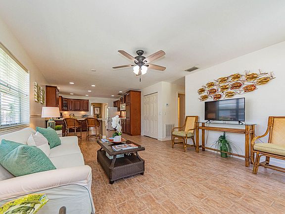 Perfect, Perfect Location in South Beach in Vero Beach just steps to the widest & most beautiful beach and blue ocean! Spacious, Bright, & Beautifully furnished 2 br, 2 ba, with 1500 sq ft. Open & spacious well stocked newly renovated kitchen with breakfast bar as well as the cute dining room overlooking the palm trees and beautiful back yard.