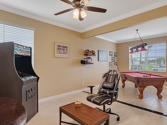 Quartz countertopsHigh ceilingsOpen floor planOversized bonus game roomSun shelfNeutral decorTile floors