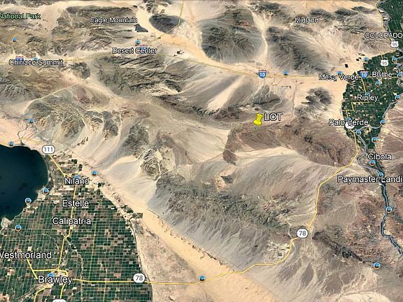 20 acres of recreational land nothwest of the Hauser Geode Beds west of Palo Verde and south of the Little Chuckwalla Mountains Wilderness. APN 060-440-025-000. The road crosses the east border of the lot at GPS Lat: 33.40924 Lon; -115.01237