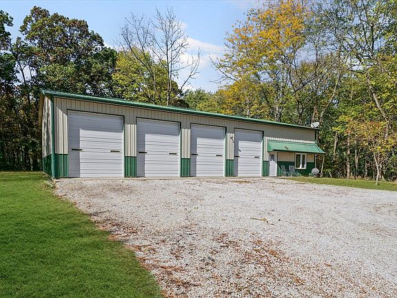 Discover a truly unique property offering privacy, timber, a small stream, and exceptional workspace all in one. Set on approximately 3 acres of wooded ground with a creek running through, this 2-bedroom, 1-bathroom home provides 1,373 square feet of comfortable living space paired with an expansive attached workshop and garage. It's an ideal setup for car enthusiasts, hobbyists, woodworkers, or anyone who needs room to work and create. The kitchen, dining, and living areas flow together in an open layout that draws in natural light and peaceful views of the trees. Both bedrooms include generous closet space, and the shared bath is conveniently located. Major mechanicals include a water heater that's approximately 2 years old and an A/C heat pump replaced about 5 years ago for added peace of mind. The standout feature is the attached workshop and garage offering more than 1,600 square feet of space with high ceilings and concrete flooring. There are four 10' x 12' doors (the two middle doors equipped with garage door openers). The design supports a clean, organized environment for projects, equipment, vehicle storage, lifts, studio work, or recreational use. Outdoors, the concrete patio provides a quiet place to unwind and take in the natural surroundings. A rare combination of acreage, practical living, and exceptional workspace, all just minutes from town. Some may call this property a retreat, a home by the woods, a shouse, or a barndominium, and you could call it home.