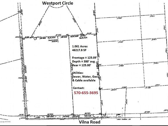 One full Acre of 100% usable, level land makes this the best value in the neighborhood. Beautifully wooded, very private 1.06 acre lot (125ft x 380ft) on a cul-de-sac street in Highland Hills; 5mins to Rt-81/I-476 interchange, 10mins to General HS or Geisinger. All utilities already on-premise; Electric, Nat.Gas, Water, Sewer, Comcast.