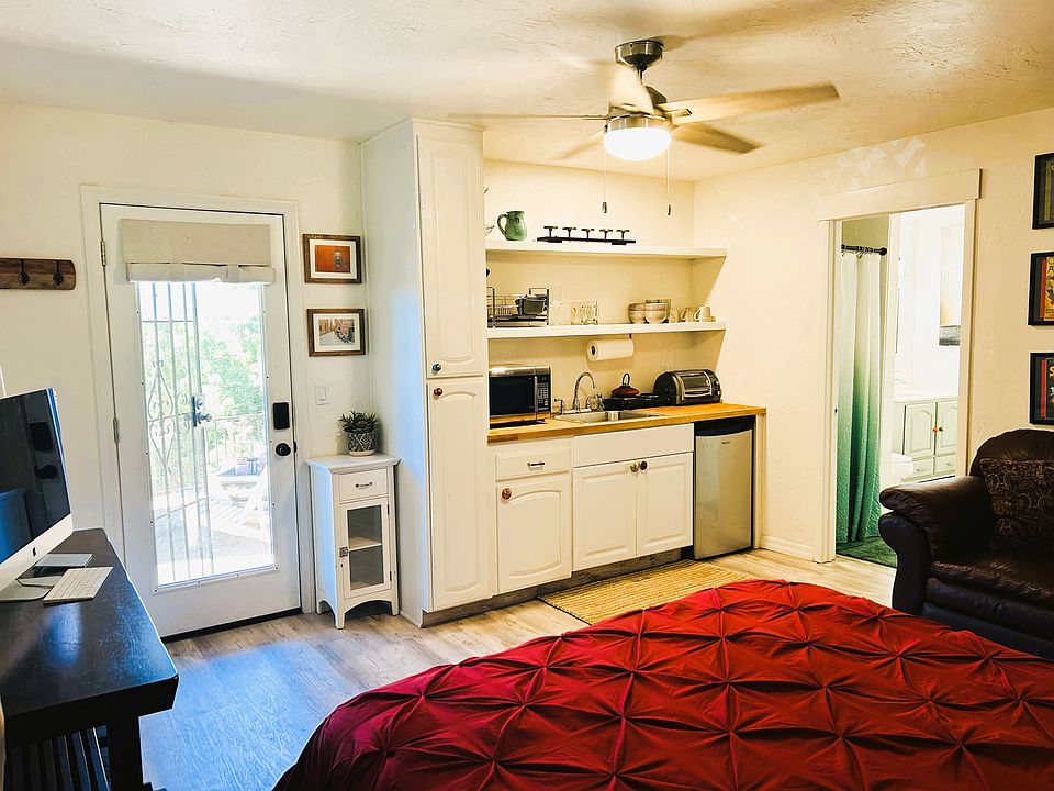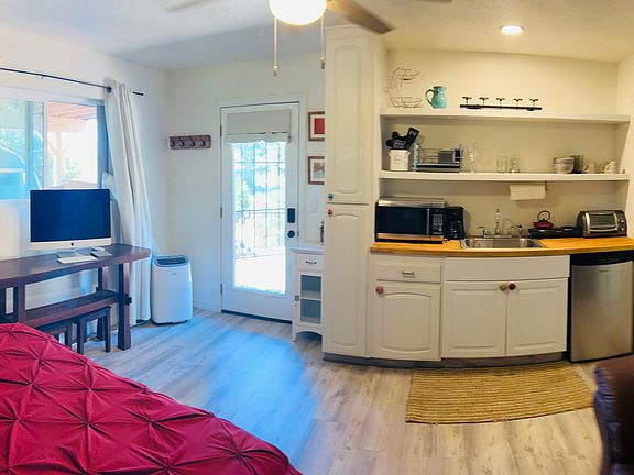 This newly built ALL INCLUDED and FURNISHED studio is conveniently located just a two-minute drive from Vista Village, where you'll find a variety of restaurants, a theater, and grocery stores. It features a private parking space and is perfectly suited for a single student, travel nurse, or military personnel. Fully furnished, the studio offers breathtaking sunset views and includes a private entrance and patio, providing an ideal space to unwind after a long day. Nestled in a quiet cul-de-sac, it offers a serene atmosphere while still being close to the vibrant life of Vista Village.