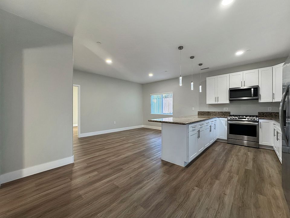 A newly constructed 2 bedroom and 1 bathroom space with open lay out. New and modern appliances, spacious living room and dining room. Ceramica long countertops useful for eating or sitting at, lots of natural light and a patio to relax on allowing for enjoying the space and quiet surroundings. Located within 5 minutes drive of shopping and other sources of entertainment and parking within gates makes this a great place to call your own. Utilities such as water, electric, gas, and trash collection are included in rent. Internet and other similar services not included.