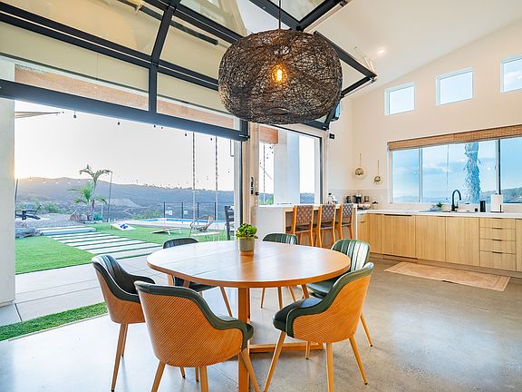 Step inside and immediately take in the breathtaking views. One of the standout features of this property is the unique living room setup with indoor/ outdoor living showcasing an overhead roll-up glass door. This design brings the outdoors in, allowing you to enjoy the California weather from the comfort of your living room. Step outside, and you'll find a covered patio, a refreshing heated pool, and a fire pit. With a view that stretches as far as the eye can see, this space is perfect for relaxation, outdoor dining, and enjoying the beauty of surrounding nature. This open concept design allows people in the kitchen to connect with everybody in the dining area, living rooms, and even the outdoor spaces. Enjoy all the amenities that this chef's kitchen offers! Want to pass some appetizers out to the guests outside- no problem! The "pass through" servery kitchen window brings function and beauty to the space. You can choose to eat at the dining room table that seats 6, the servery window with bar stool seating that sits 6, and steps away you can take in the gorgeous views under the covered patio with an outdoor table that seats 8. This spacious vacation home offers three beautifully appointed bedrooms that all include 45" televisions. The master bedroom suite boasts a luxurious king-size bed, offering a regal night's sleep where you wake up to the beautiful surrounding mountain views! Take your freshly brewed cup of coffee right outside through the master bedrooms sliding glass doors and enjoy the outdoor furniture accompanying your bedroom suite. The en-suite master bathroom features a dual vanity, luxurious modern shower, and toilet room. The second bedroom features a comfortable queen-size bed, and the third bedroom is perfect for families with a full-size bunk bed that sleeps 4 children and a pullout twin trundle bed which sleeps 1 more, providing a cozy and efficient sleeping space. But the magic of this space extends beyond the bedrooms. Our living room and game room are versatile areas for relaxation and entertainment. The game room, aka The Big Lebowski "Dude room", features a pool table, Pac-Man machine, Playstation 5, and board games; adding an extra layer of entertainment to your stay. And for the ultimate in relaxation, don't forget to unwind in the hot tub and pool, taking in the breathtaking surroundings. You'll love this private space! What are you waiting for?