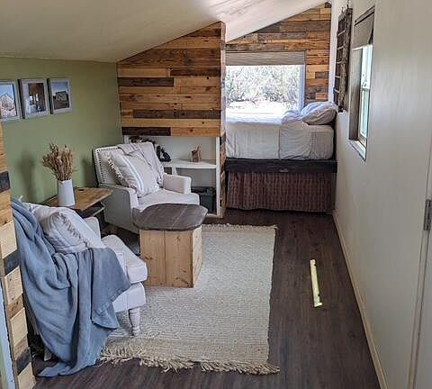 Looking to live off the grid? Here is your chance to own a beautiful small home on 20 private acres in Chevelon Retreat. This is the perfect set up for a week-end getaway or full time living! This adorable home was built in 2022 and is 200 square feet, however it feels much bigger! Brand new deck added in 2025. There is a comfy sitting area for relaxing, a spacious sleeping area with ample storage, warm wood burning fireplace, spacious kitchen area. The property also has a separate area for running water(rain water), out building and also comes with a generator. Bring your horses, side by sides or just go explore the 20 acres. Chevelon Retreat also offers a community well for your convenience to haul water to your home, optional POA $300.00. This property is luxury off the grid living