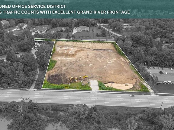 4.37 Acre Commercial parcel with excellent Grand River frontage and visibility! Landscaping screening has been completed. Zoned Office Service District. Permitted uses include but not limited to Business Services, Child Care Centers, Personal and Business Service Establishments (drycleaning, copy centers, salons, barber shops, data processing centers), Photography Studios, Banks/Credit Unions, Non-profit Offices (professional, civic, social, political, religious), Medical Offices, Other Professional Offices (Lawyers, Engineers, Architects, Administrative), Public Parks/Open Spaces, and Essential Public Services and Structures. Special uses include Restaurants, Coffee Shops, Medical Urgent Care Facilities, Veterinary Hospitals/Clinics, Health Clubs/Fitness Centers, Vocational/Technical Training Facilities, Churches, and Public/Government Buildings. Full Zoning Ordinance attached in documents. Easy access to local Retail, Office, Medical Offices, Banking, and more. Conveniently located between two I-96 interchanges. Traffic counts are tremendous! Images of property lines have been estimated for illustrative purposes only. Broker Owned.