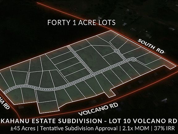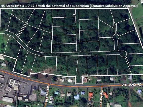 Rare development opportunity! 45 Acres on Huina Road, Kurtistown, Hawai‘i with Tentative Subdivision Approval for 40 one-acre lots! Current developer modeling lot to emulate beautiful local subdivisions such as Keaau Agriculture Lots and Ola Hou Estates.