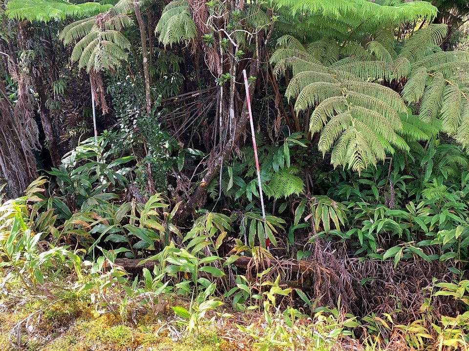 Back flag lot with great hwy access and forested in native plants, available with front adjoining lot. Two additional back to back lots also available and come with building plans and permits. Located next to Yurts of Hawaii, an established show room for its business. Lots of opportunity and potential for this property with no SSPP connection fee. Pins marked by tall white poles, located between electric pole number 162 and 163, easy to find.