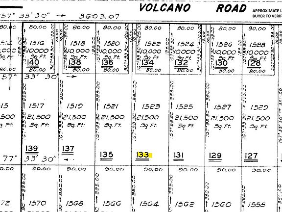 See TMK Map for approximate Land dimensions which is approximately 21,500 sqft. Located near the Volcano Village and National Park!