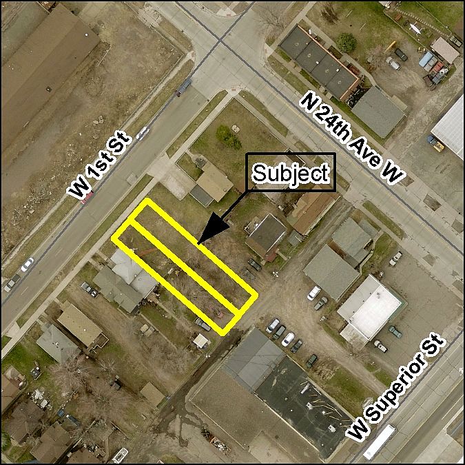 State Tax Forfeit Land! Purchase and Own Today! C22160195 _______________________________________________________________ Two partially wooded, vacant lots with frontage on the 2400 block of W. 1st St. in the Lincoln Park neighborhood of Duluth. This +/- 50' x 140' property is zoned is F-5 (Form Based), contact City of Duluth Building Safety for permitted uses and zoning questions. Contact the City of Duluth Treasurer's office for details regarding a razing assessment in the amount of $5,695.85, and any additional certified, pending or future assessments that may be reinstated. Recording fee $46.00. Abstract _____________________________________________________________________________________ Please see the Saint Louis County Tax Forfeited Land Sales website for disclaimer information. County Financing Available! 10% down at 10% interest for up to 10 (ten) years.