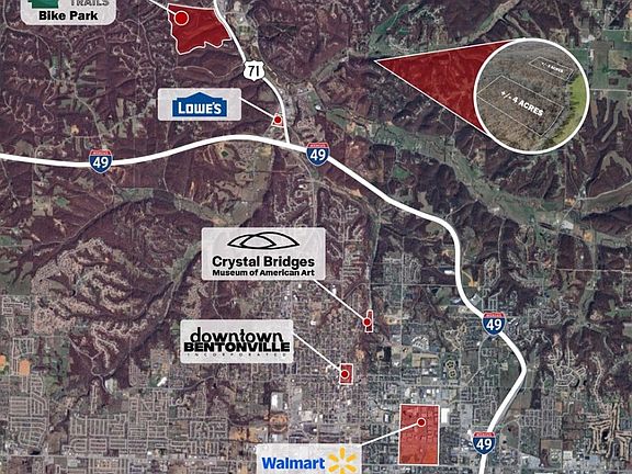Location, Location, Location - BEST OF BOTH WORLDS - In the county, outside of city limits with lush trees, hills, and starry nights! Only 5 minutes from I-49, 11 minutes from Downtown Bentonville and 14 minutes from Walmart HQ. Less than 2 miles from the new OZ Trails system park with a gondola that is planned just west of 71Business. Discover +/- 4 acres of wooded land for sale just outside of Bentonville, offering the perfect opportunity to build your dream home in a peaceful yet convenient location. Situated near E McNelly Rd, this property is approx. 1.5 miles from US 71 Highway and just 2 miles from I-49, ensuring easy access to nearby amenities, shopping, and dining. Located within the highly sought-after Bentonville School District, this land provides an excellent investment in a rapidly growing area. Don't miss out on this prime piece of land in a thriving Northwest Arkansas Community! Seller is willing to split up the lots in different sizes so long as the county will approve.