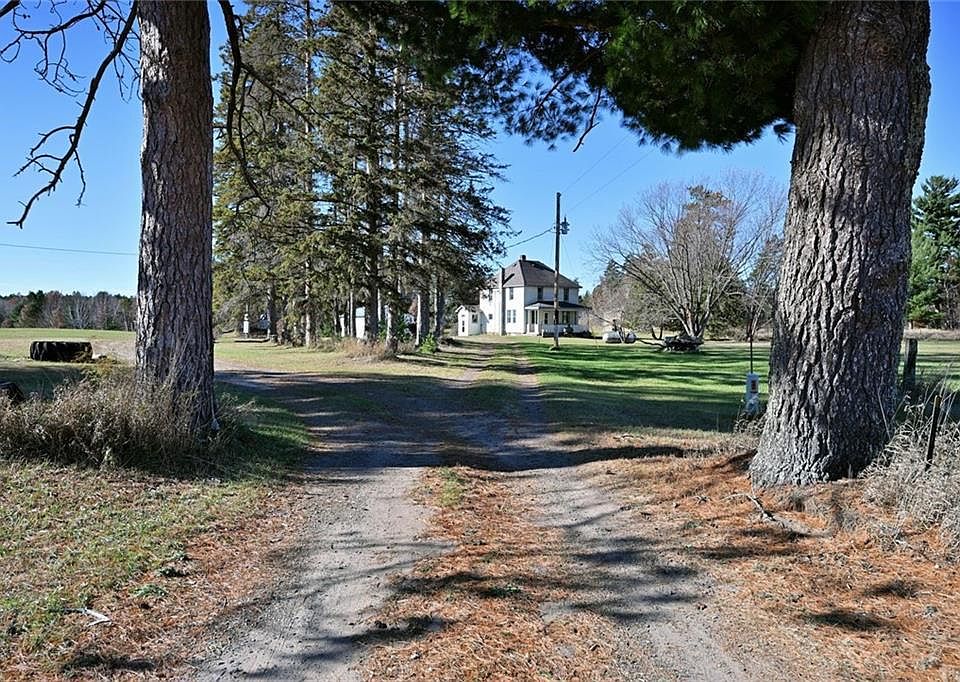 Step back in time with this turn of the century farmhouse situated on approximately 68 acres, just 5 miles south of Hayward. Built in the early 1900s by the namesake of Shue?s Pond, featuring original maple floors, solid wood doors, and wide trim throughout. Main level includes kitchen with mix of original and newer cabinetry, a mudroom off the rear entry, one bedroom, half bath, and laundry in basement. Three additional bedrooms and full bath located upstairs. Open front porch ideal for enjoying summer breezes. The site was a former cranberry farm with several original outbuildings including a 32x54 pole building, 2 car garage, and barn with insulated workshop & wood stove, small log structure, and chicken coop. The land offers a mix of wooded and open acreage suitable for pasture, horses, hobby farm, or gardens. The setting would be difficult to replicate and includes a 10 acre private lake/pond and borders the National St. Croix Scenic Riverway. Truly a rare combination of history, acreage, and location!