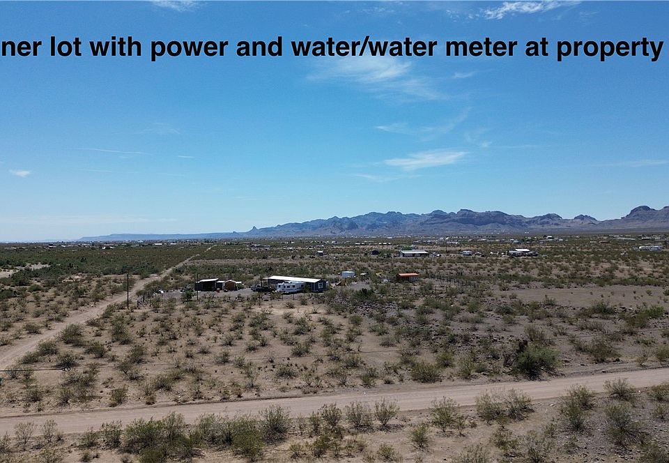 2.12 Acres of land with WATER METER and POWER to the property line. This property is on county maintained roads and just a few blocks off paved Estrella. Amazing views of the surrounding mountains and ready for your permanant redience or weekend getaway. With power available at the southeast corner and water and water meter in place, this makes for an ideal property.