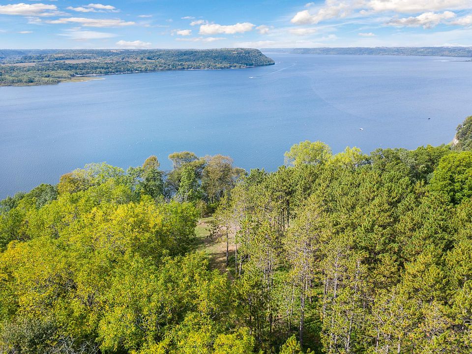 A spectacular, world-class property with magnificent, panoramic views overlooking beautiful Lake Pepin between Maiden Rock and Stockholm, WI. Only 1 hour and 15 minutes southeast from Minneapolis. 10 acres of serene privacy on a bluff, surrounded by mature trees, overlooking two dramatic rock outcroppings, and incredible sunsets. Only 10 minutes away from many attractions of the Lake Pepin area: the highly acclaimed Harbor View Cafe, Villa Bellezza Winery, Pepin Marina, Smiling Pelican Bakery, antique stores, small shops, artist studios. The scenic drive from Prescott, WI to the property takes you through picturesque great river road towns of Diamond Bluff, Bay City, Maiden Rock, Stockholm. This property is well worth your time to go see it for yourself. You will see an exceptional property that offers breathtakingly gorgeous, panoramic water views and a truly magical feel. See attached Addendum and Video for more information
