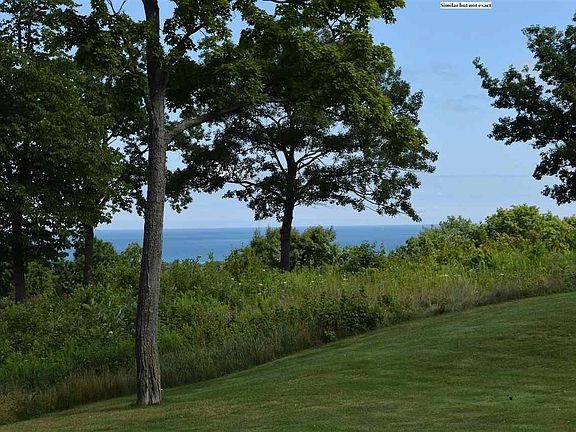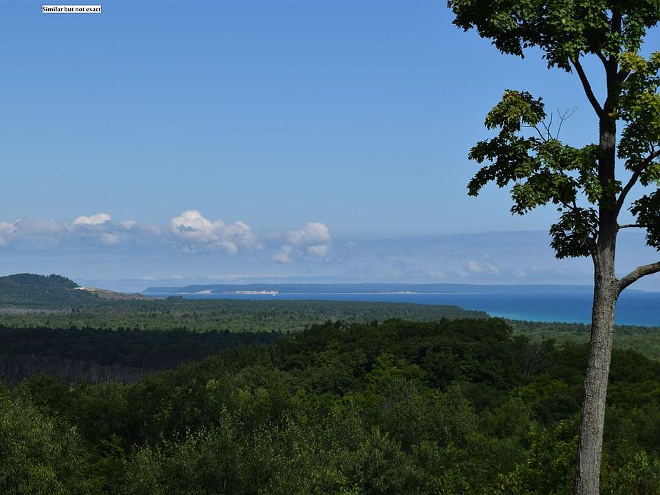 Absolutely stunning views of Good Harbour Bay, Pyramid Point the Manitou Passage and the Lighthouse (now known as The Crib). The entrance is serene with a paved winding road and a bountiful of mature hardwoods with 150 acres of privacy bordering Sleeping Bear Dunes National Lake shore land.. Excellent building restrictions and yes you can enhance your view by trimming the trees. This is an exceptional 2.6 acre parcel.