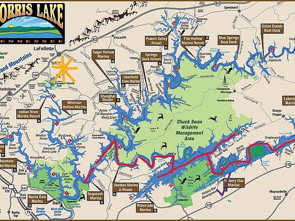 Over 1/2 acre of wooded property with mountain views. Great slope for a walk out basement home OR a large deck off a mobile home to enjoy the mountain and woodland views. Property is convenient to retail, schools and Hospital. City Sewer is available. Doublewides allowed and must be new and have mortared block perimeter instead of vinyl or metal skirting. Norris Lake access is just 1/2 mile away. Jump on this value.