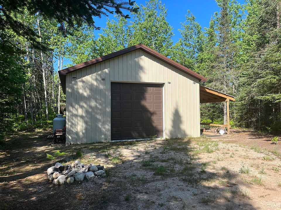 What a wonderful camp. Located right on the snowmobile trail, close to 3 beautiful lakes, this property is a great hunting spot, and it borders state land. You can't go wrong with this unique Up North camp! It is powered by a generator, has a point well for water, a wood stove and gas stove for heat. It is insulated for winter use, there is no septic tank, bathroom is not pre plumbed, just a line to tie into outside and there is a grey water tank for the kitchen sink. The woodstove will need a stack, if that is to be used. The propane stove on the other side will heat all areas. and has a hook up for a gas fridge and an on-demand water heater. All high and dry property. A perfect place to enjoy the U.P and make lots of fun memories. Call today to see! Building is 28x40.