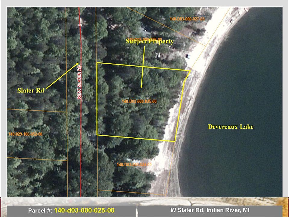 Devereaux Lake Frontage - Ready for New Home Site or RVVacant parcel on 155 feet of Devereaux Lake frontage. Build to your specifications or park your camper on this clean and quiet 38-acre lake between Indian River and Cheboygan featuring great fishing, kayaking, canoeing and ''no wake'' boating. Mostly wooded .6 acres with dirt driveway and space for an RV. There's a sandy shore at one end of the frontage. Possibly the last build-able site on lake with mix of seasonal and permanent residents. Picnic table, fire pit and small shed included. Fishing, swimming, loons, memories. Close to Mullet Lake public access, rails and trails, state land and more.