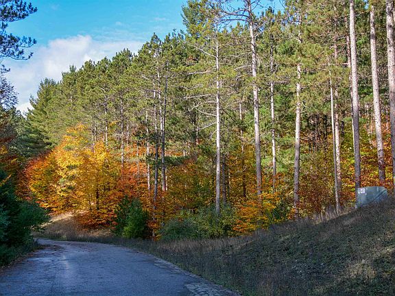 Peaceful northern michigan scenerySurrounded by mature treesUnderground utilitiesGently rolling terrain