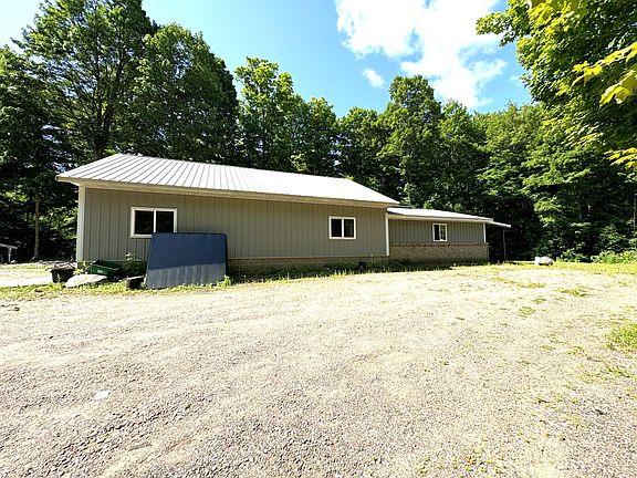 Tucked away on 8 rolling acres of beautiful hardwoods, this 2 bed, 2 bath property has so much to offer! It is in need of TLC; but would make a great spot for those that work in Wausau or Antigo. Located on the end of a cul-de-sac you have the utmost privacy as nature is your only neighbor. The house has a small kitchen, living room, large master bedroom with a walk-in closet, 2 full bathrooms, laundry/utility room, and an extra bedroom on the upper level. The enormous garage/outbuilding has a built-in kitchen sink with cabinets and a bar/rec room with a sliding glass door to a covered porch. This is every man's dream garage with heated floors throughout, a workbench, and room to work on cars all day long! A gazebo, fruit trees, grape vines, and a chicken coop are scattered throughout the beautiful yard. Come take a look! (Property includes 3 parcels.)