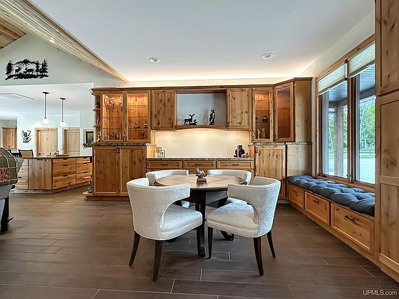 Secluded Cedar River Retreat – Carney, Michigan Experience the perfect combination of craftsmanship, comfort, and natural beauty with this remarkable 35-acre riverfront estate. Offering approximately 1,800 feet of pristine Cedar River frontage, this property provides tranquility, stunning views, and a true connection to the outdoors. This 3-bedroom, 2.5-bath home features top-of-the-line construction and thoughtful design throughout. The expansive open-concept main living area boasts a beautiful fireplace, heated floors, and 36-inch doors for easy accessibility. A large master ensuite occupies one end of the home, providing privacy from the two additional bedrooms located on the opposite end. The home is fully furnished and move-in ready, showcasing meticulous care and attention to every detail. A two-car attached garage, with one bay currently set up as a workshop, complements the property, along with two immaculate pole buildings offering abundant storage or hobby space. Step outside to enjoy over 1,300 square feet of poured patio, ideal for entertaining or simply relaxing while taking in peaceful views of the Cedar River. For guests or additional accommodations, the property includes three RV hookups, each with power and water access. Set well back from the road, this home offers exceptional privacy while remaining conveniently close to local amenities and recreation opportunities. Every inch of this property reflects quality, care, and pride of ownership. Whether you’re looking for a permanent residence, seasonal retreat, or riverfront getaway, this turnkey estate delivers comfort, beauty, and seclusion in the heart of Michigan’s Upper Peninsula.