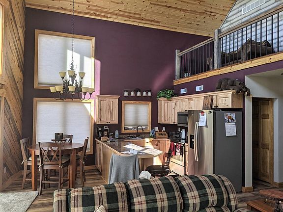 Newer home with two 36x54 outbuildings on 435 acres! The newly constructed home features towering cathedral ceilings in the living room, dining and kitchen area with large southern facing windows. There is a fieldstone fireplace and rustic wood beams along with provide Northwoods charm. There are 2 bedrooms and 1 full bath on the main floor. The upper features a large bedroom, full bath , oversized walk-in closet and loft area. The outbuilding are also newer construction, both are on slabs and one is partially finished with a storm shelter and huge concrete apron out front works great for basketball. The 435 acres of land is beyond impressive, there is an extensive trail system which leads to food-plots and sizeable field area on the west side. This land has everything to hold trophy bucks with great cover, food supply not only from the plots but also from abundant red oak . There are a few water holes and Old Mill Creek flows through this property.