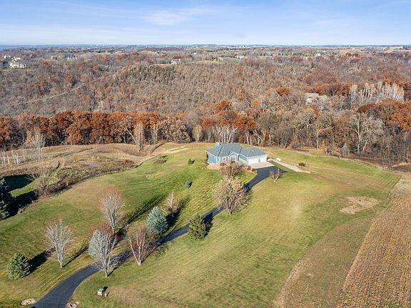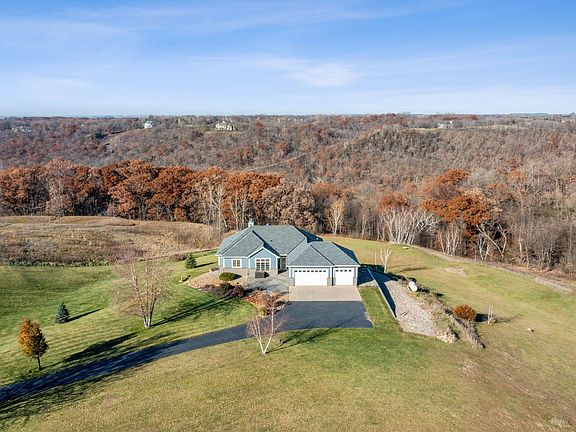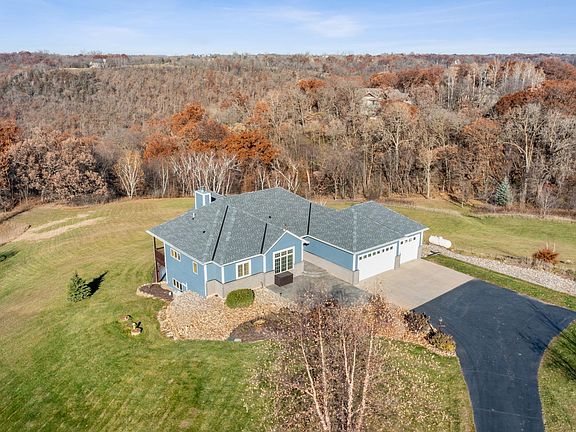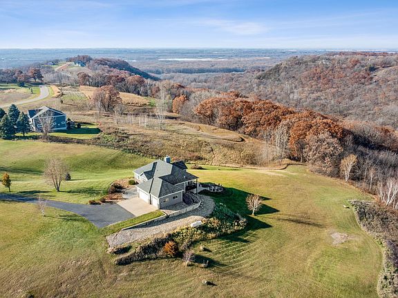 Discover the home you've been dreaming of! This meticulously crafted 3-bed, 3-bath residence boasts some of the most spectacular views in Western WI, providing a perfect blend of indoor luxury and outdoor serenity. Front stamped concrete patio, side deck, and private owner's suite deck for multiple outdoor entertaining options. Spacious backyard patio with a beautiful firepit, offering a picturesque setting on the expansive six-acre property. Access to community walking trails and the Mississippi River. Well-appointed kitchen with custom cabinets and hard surface countertops. Refinished hardwood floors, cozy fireplace, and stunning views from the living room. Luxurious owner's suite with private bath and access to a deck, and an additional bedroom and bathroom on the main level. Private third bedroom with its own bath and direct access to the back patio, creating a perfect retreat. Recently renovated lower-level family room featuring stamped concrete flooring. See it today!