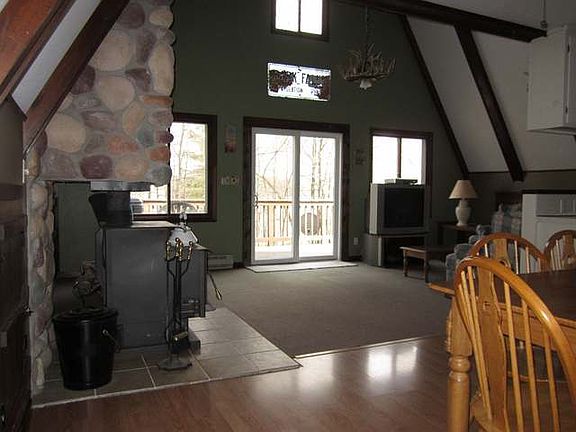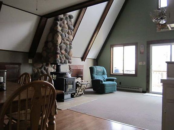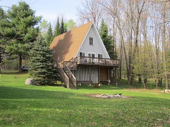 Lake front cottage on a full recreational lake. Le Tourneau offers you excellent fishing, known as a Largmouth Bass and panfish lake & a few big Northerns-hours of enjoyment await the angler. The lake offers predominantly sand frontage and this parcel is no exception. Larger than average at 120 acres, waterskiing/tubing is allowed without concern. Nearby is the Chequamegon National Forest, Flambeau River State Forest and Flambeau Rivers as well as numerous other lakes of importance The home offers two private bedrooms on first floor and a large loft with multiple beds. The first floor also features a stackable laundry area, bathroom, galley style kitchen, dining area and a woodburning stove to create the ambience of the cabin and to ward off the fall chill. Awesome southernly lake views - sun all day long on the lake front and lake side deck. Classic A-frame construction is sure to please the eye. Located on the quiet side of the Northwoods - and the less expensive side too.
