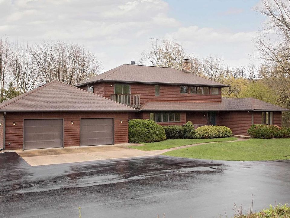 Secluded Executive home on 57.03 acres. Custom built for nature lovers and land conservationists. More windows than walls in this beautiful home so you're one with nature during all seasons. Accent lighting hidden above most blocks of windows for great evening ambiance. Gorgeous floor to ceiling custom stone fireplace. Main bedroom suite on second floor with full bath and walk-in closet. Bedroom #2 on the main along with office/bedroom #3/flex space. Main floor laundry and a full bath on every level. Three season porch adjacent to large deck. LL mostly finished as Rec/bunk area, workshop/office, also super storage area. 2 car garage, extra deep. 28.33 acres are in CRP program. DO NOT DRIVE UP PRIVATE DRIVE WITHOUT APPOINTMENT. Parcels 704 & 706