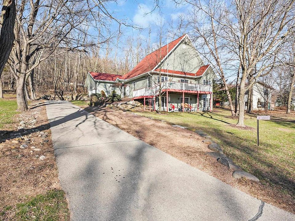 LAKE ACCESS! Just a hop, skip n' a jump from your front door - Your search ends here! Nestled on a 3/4-acre wooded lot just across from Okee Bay, this charming 3 bed/2 bath home features an inviting open-concept, vaulted ceilings in main living, spacious kitchen open to dining, & main laundry. Step out onto the expansive deck to enjoy stunning views, a perfect spot to unwind! LL features, large rec room with walk-out exposure leading to a concrete patio. Additional bedrm & primary suite, which includes a walk-in closet and a beautifully remodeled bathroom, complete with a walk-in tile shower and dbl vanity. Located just minutes from downtown Lodi, quick access to waterfront dining, local boat launch, & Ice Age Trails. Come experience all that the Lake Wisconsin area has to offer!