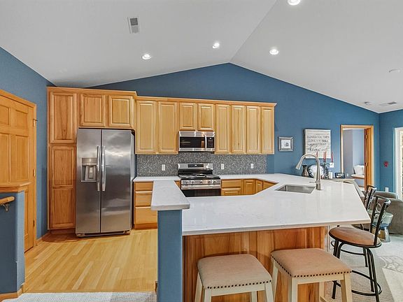 This private entry, open concept condo with an elevator has that beachy feel! Primary, ensuite bedroom w/walk-in closet & full bath w/jetted tub, & walk in shower. Enjoy breathtaking sunrises, sunsets & views of Lake WI & surrounding bluffs from both sides of this 2nd story condo. Recent updates include a new roof, kitchen makeover: quartz countertops, large sink/faucet, new stainless appliances. Vaulted ceilings & cozy gas fireplace in the great room. Patio doors to spacious, maintenance free deck with gas hookup for your grill/Blackstone - overlooking scenic wooded area w/wildlife & 3 season lake views. Enjoy walking paths, parks, lake life, nearby restaurants & Ice Age Trail, plus you aren?t far from Devils Lake, WI Dells & Cascade Mountain. Boatslip rental may be available thru Assn