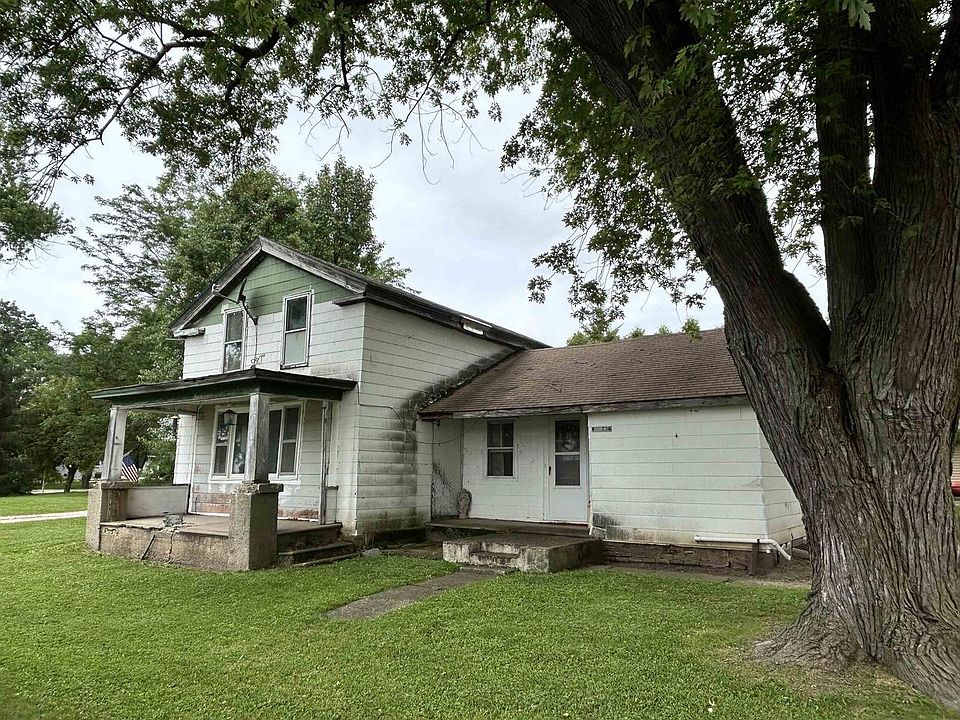Leaking roofs. Leaky basement. Siding needs to be replaced. Older front porch in bad shape. Definitely needs a new roof, soffit & fascia on house & garage. Tear it down, unless you are looking for a project! Laundry nook off of eat-in kitchen. Will not qualify for FHA or VA loans. Selling AS IS. 2 bedrooms on main level. 3 bedrooms upstairs. Seller stated property was a bakery once upon a time. Furnace, water heater and water softener appear to be more recent.