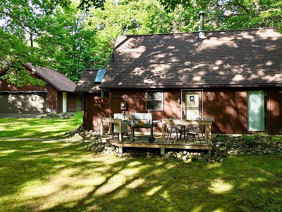 Escape to your own private retreat on over 10 acres of mature maple and oak hardwoods in the heart of the Northwoods. This charming cabin offers a 2-bedroom loft design with vaulted ceilings, freestanding wood stove, and a full bath with skylight. The spacious kitchen is ideal for entertaining, while a forced air furnace and drilled well ensure year-round comfort. Step outside to a parklike setting with a peaceful pond, firepit area, and trails to explore. The insulated 3-car garage includes a wood stove, loft storage, and a dog fence behind, making it perfect for hobbies, vehicles, or workshop use. A long gated driveway provides seclusion and security. Located near pristine lakes, ATV/snowmobile trails, and endless outdoor recreation, this property combines comfort with the natural beauty of Wisconsin’s Northwoods. A rare opportunity for a year-round getaway cabin in a truly serene setting.