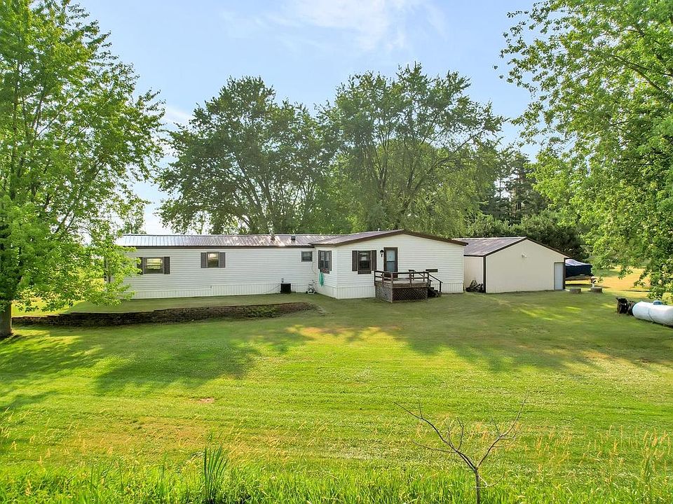 Here's the getaway property you've been waiting for! Enjoy 150 feet of frontage on Lake Puckaway, and don't forget your water skis! Single Wide Manufactured home is well maintained, and boasts two living areas, as well as 3 bright bedrooms, two full bathrooms AND a den (currently being used as a bedroom). Large kitchen w/ island is perfect for entertaining and has ample storage. All this with conveniences such as washer, dryer, central air and 2 car detached garage! Brand new Air Conditioner September 2024! Lot is level for so many uses, and is over an acre. Check out the 3D tour!