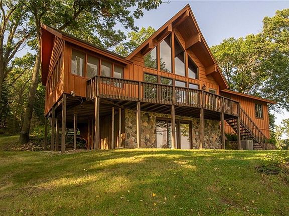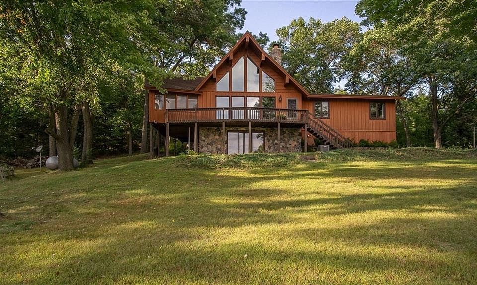 One-of-a-kind, craftsman A-frame home on 3.56 acres just 7 mins south of Osseo, Beautiful, serene views, unbeatable natural light, 20+ foot ceilings, massive windows. Newly remodeled kitchen with granite in 2019. 40x43 detached pole shed for all of your outdoor hobbies/gear. This property is sure to go quickly with loads of potential and unbeatable character. Walk out basement. Both the upper and lower levels are anchored by hand split, custom, 20ft fieldstone wood burning fireplaces. 20+ blueberry bushes, Apple trees and grapevines (try some on the vine now). Minutes S of Osseo with interstate to EC